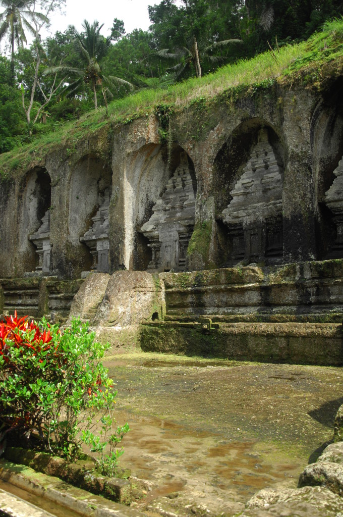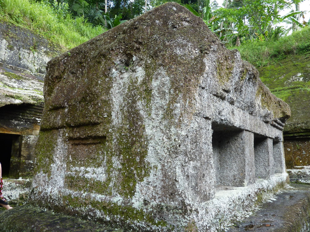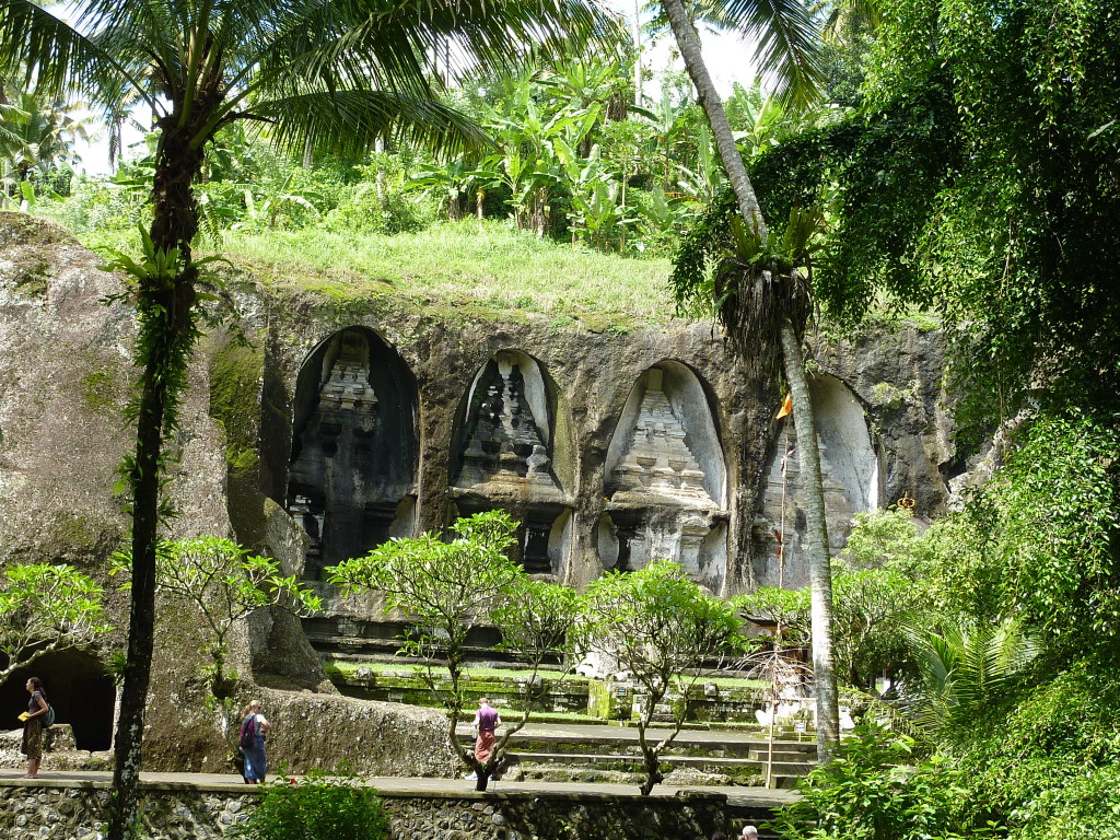 Nordöstlich von Ubud in der Nähe des Dorfes Tampaksiring befindet sich der Felsentempel von Gunung Kawi. Der Weg zu diesem Heiligtum führt über 300 Stufen zu einer Steinbrücke über den Fluss Pakerisan, der sich sein Bett in die von Reisterrassen geprägte Landschaft gefressen hat. Unten in der Schlucht fällt der Blick auf die etwa 7 Meter hohen in die Felswand geschlagenen Schreine. Sie sind im 11. Jahrhundert zum Gedenken an Köng Udayana, seine Frau und den drei Söhnen errichtet worden, weitere vier Schreine mutmaßlich zum Andenken an die Konkubinen des Königs. Teil der in den 1920er Jahren wiederentdeckten Anlage ist außerdem eine Mönchsklause, die bereits im 9. Jahrhundert ebenfalls in den Fels gehauen wurde.