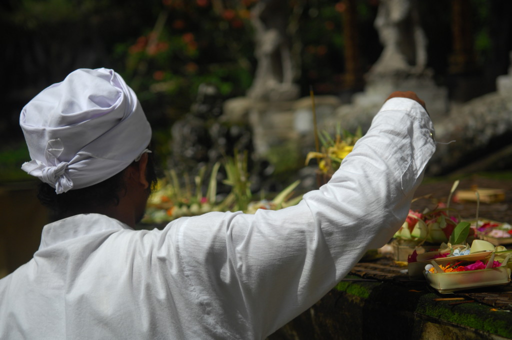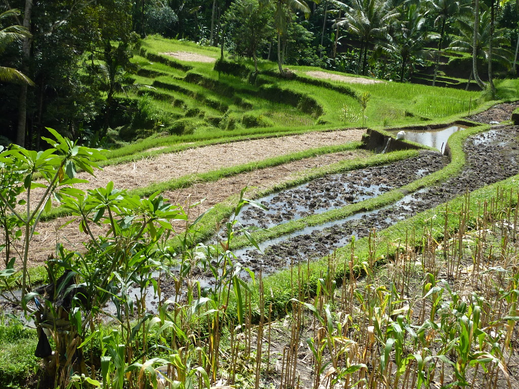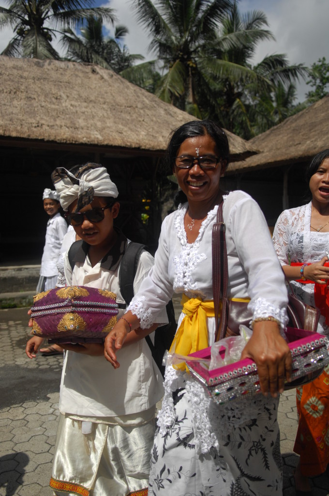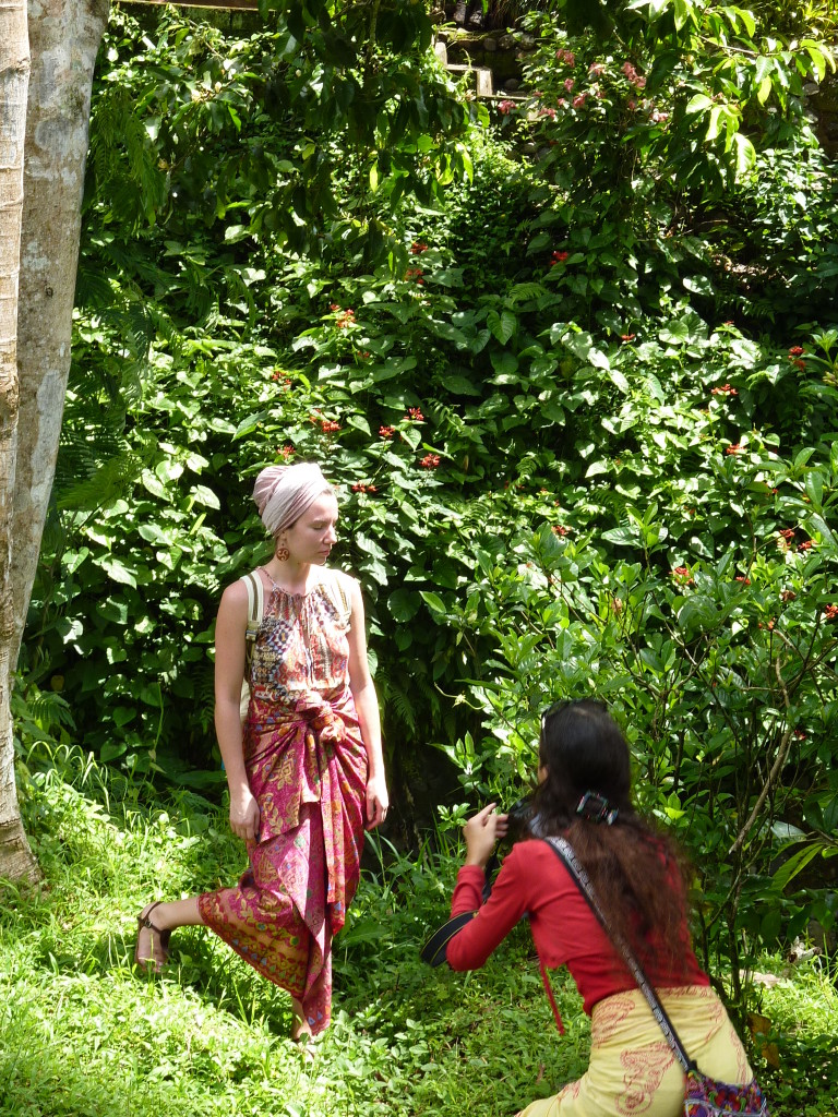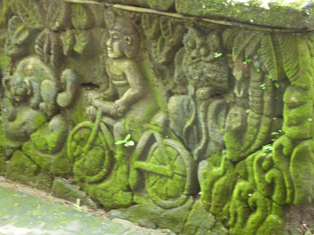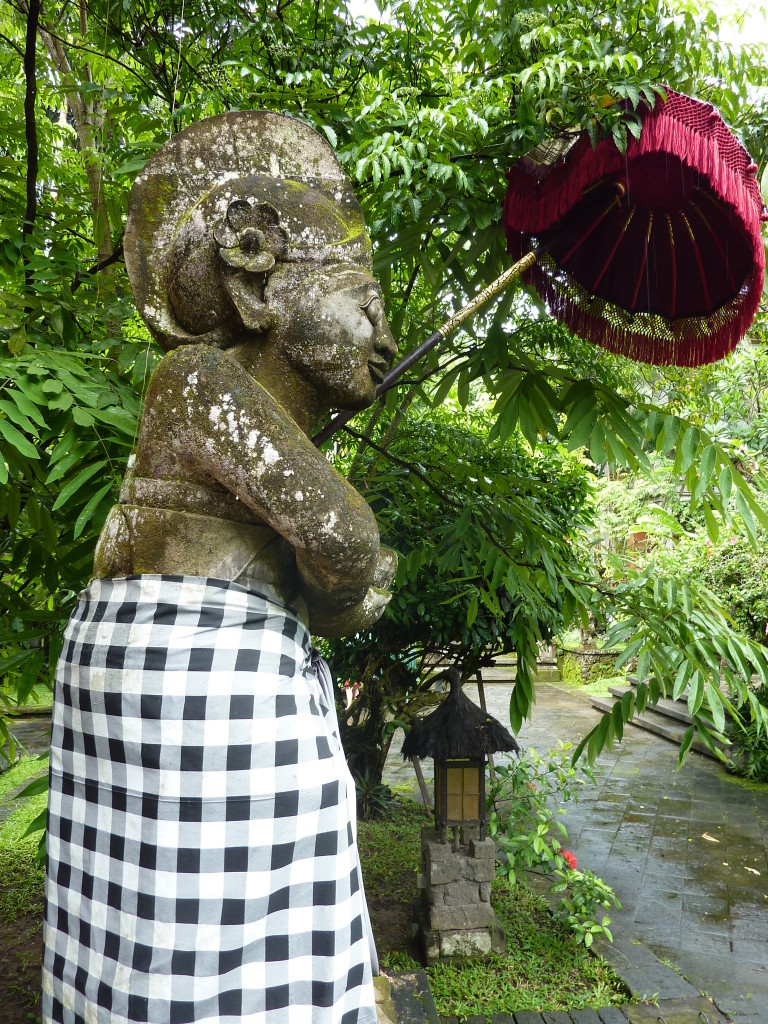 Am Vormittag fahren wir mit Imde Arinata in die Umgebung von Ubud. Er ist regelmäßig als Fahrer und Guide für die Gäste des Ladybamboo im Einsatz. Auf dem Programm der heutigen Halbtagestour stehen zwei besondere Tempelanlagen ganz in der Nähe, die man prinzipiell auch mit dem eBike von unserem Quartier aus besuchen kann. Das Ladybamboo hält eigens zu diesem Zweck ein paar eBikes vom Hersteller Riese und Müller für die Gäste bereit. Da die Regenwahrscheinlichkeit für heute fünfzig/fünfzig steht, entscheiden wir uns leiber für eine Auto samt Fahrer, um zu den geplanten Zielen zu kommen.