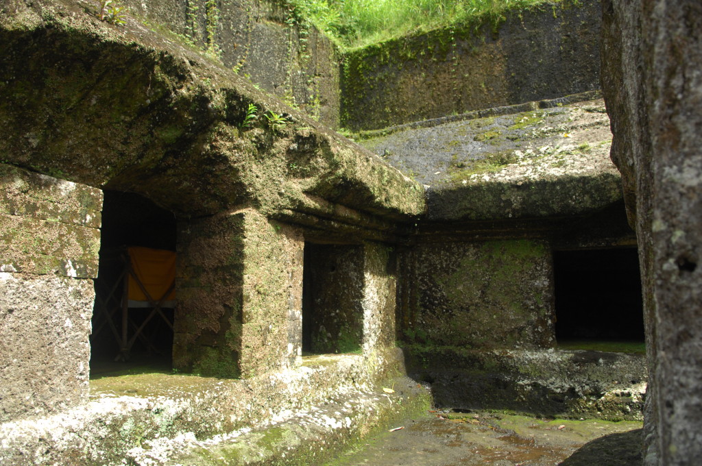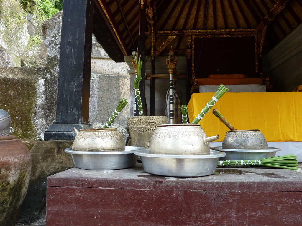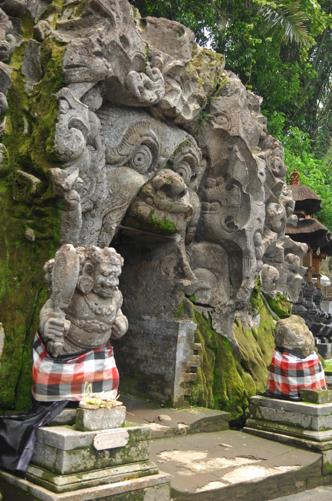 Einige Kilometer östlich von Ubud an der Straße nach Klungklung liegt das Dorf Bedulu. Hier wurde ebenfalls in den 1920er Jahren ein weiteres Heiligtum aus dem 11. Jahrhundert wiederentdeckt. Im Zentrum der Anlage von Goa Gajah befindet sich der mit diversen in den Fels geschlagenen mythischen Figuren umrahmte Eingang zu einer heiligen Höhle, die eine Ganesha-Statue beherbergt. Sie wurde 1995 in die UNESCO-Liste des Weltkulturerbes aufgenommen. Den Spitznamen „Elefantenhöhle“ erhielt sie, da die den Höhleneingang dominierende Maske vom Entdecker fantasievoll als Elefantenkopf interpretiert wurde. Tatsächlich gibt der aus einem balinesischen Dialekt stammende Name eine bessere Antwort auf das Namensrätsel: Goa Gajah kann mit Muttermund übersetzt werden. Und einem solchen entspricht der dämonengesäumte Höhleneingang sicherlich besser als dem Maul eines Dickhäuters.
