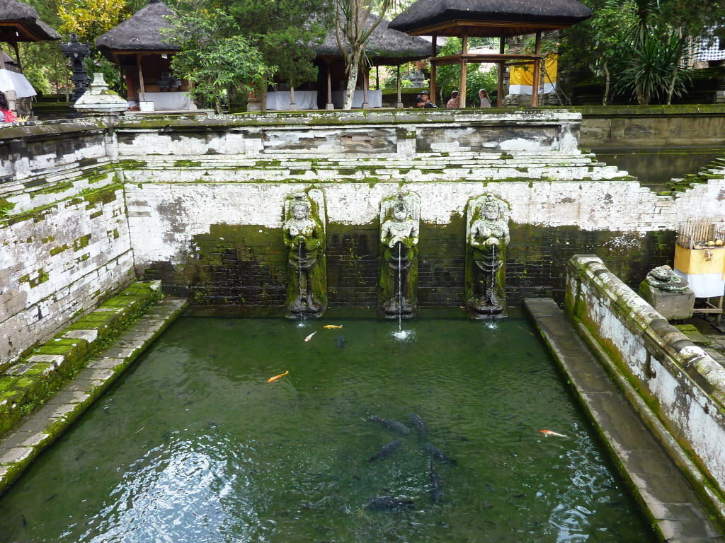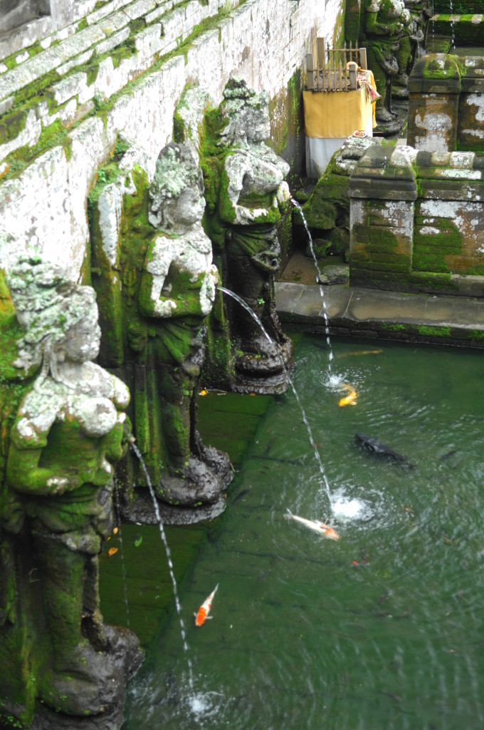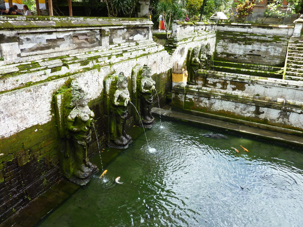 Vor dem Felsentempel befinden sich zur Entnahme heiligen Wassers große Wasserbecken, deren Reste in den 1950er Jahren ausgegraben und später rekonstruiert wurden. Ein rituelles Bad nimmt hier schon länger niemand mehr. Heute schwimmen weiß-orange gezeichnete Kois und schwarze Karpfen in dem von Quellnymphen bewachten Pool. Dahinter führt ein Rundweg zu einem kleinen buddhistischen Heiligtum, in dem man sich gegen eine kleine Spende segnen lassen kann: auf den gewünschten Geldbetrag wird man nach dem vollführten Ritual mit nachdrücklichem, unverständlichen Gebrabbel und unmissverständlichen Gesten hingewiesen.