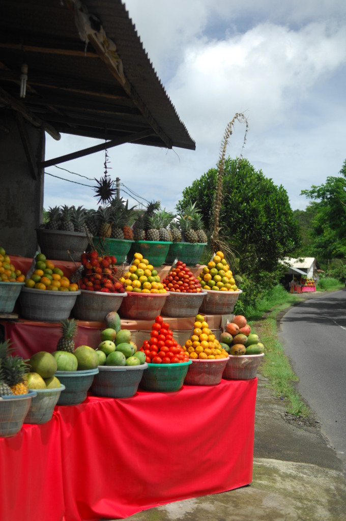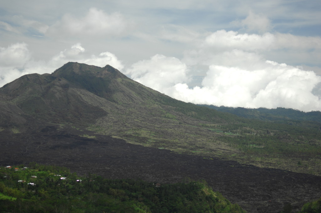 Gegen 10.30 Uhr erreichen wir den Mount Batur. Der Vulkan ist immer noch aktiv, wird aber derzeit als schlafend klassifiziert. Der letzte Ausbruch ereignete sich zwischen März 1999 und Juni 2000, als es zu Ascheeruptionen und kleineren Explosionen im Gipfelbereich kam. Lava floss zuletzt 1963 aus mehreren Schloten westlich des Gipfels, wie man unschwer an den noch immer weitgehend vegetationslosen schwarzen Flächen unterhalb der Bergspitze erkennen kann. Für den Besuch des pitoresken Friedhofs am östlichen Seeufer fehlt uns die Zeit. Die Besonderheit: dort werden die mit Tüchern umhüllten Leichen auf Bambusgerüsten aufgebahrt und bestattet.