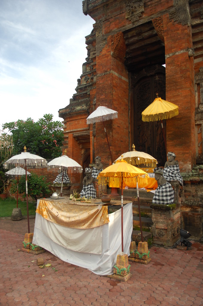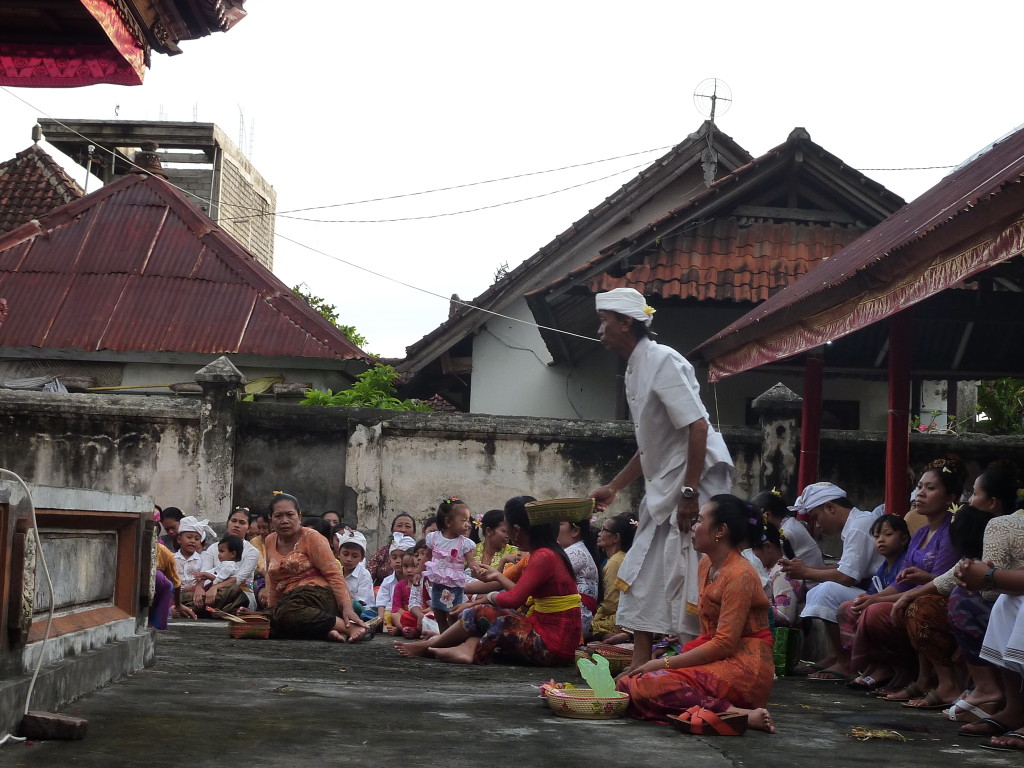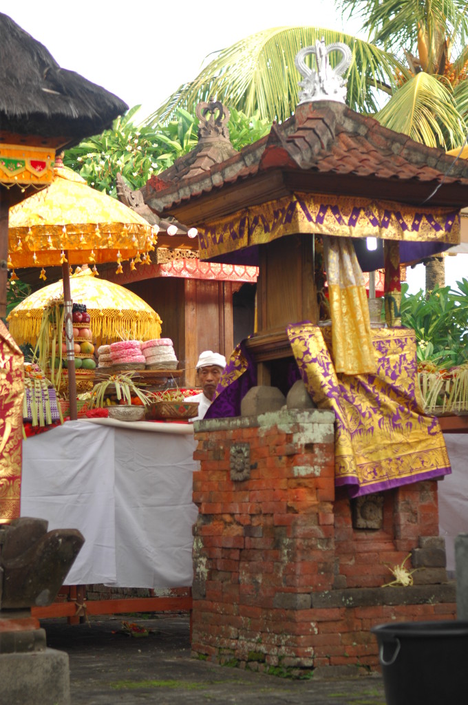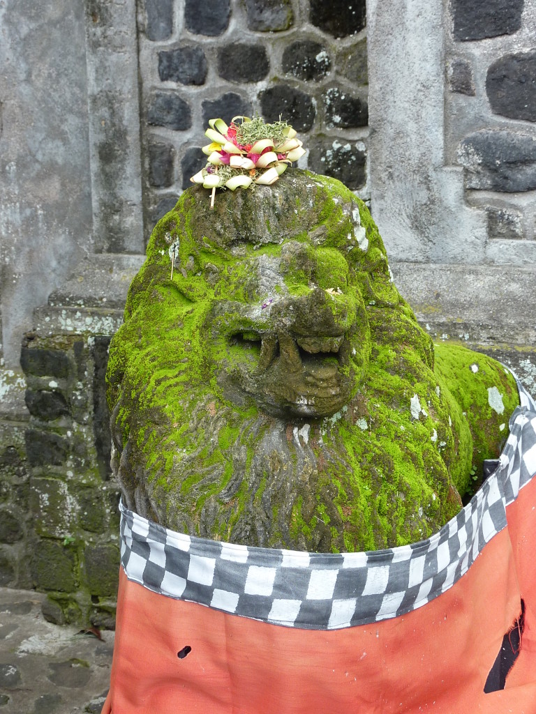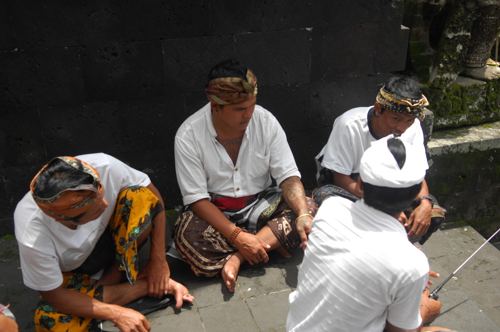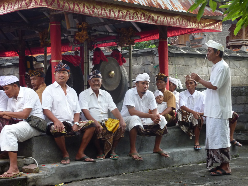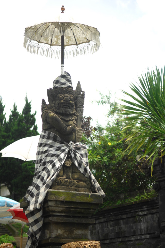 Das bedeutendste hinduistische Heiligtum in Indonesien ist der Pura Besakih. Dieser „Muttertempel“ aller Tempel liegt am Fuß des ebenfalls aktiven Vulkans Gunung Agung. Bevor wir gegen Mittag vom Parkplatz zu der eigentlichen Anlage mit den über 200 Gebäuden gehen können, müssen wir an der „Touristeninformation“ unsere am Ortseingang gekauften Eintrittskarten entwerten lassen. Damit nicht genug: dem unbedarften Besucher wird das Engagieren eines lokalen Guides nahegelegt. Nur mit diesem dürfe der Tempelbezirk betreten werden – was zwar prinzipiell nicht ganz falsch, aber eigentlich nicht unbedingt notwendig ist. Für die Besichtigung reicht es völlig aus, den Pfad direkt an den niedrigen Mauern der Tempelplätze entlangzugehen und von dort aus in die Höfe zu schauen. Dafür benötigt man aber keine bezahlte Tempelwache, geschweige denn einen teuren Guide. Das vorgelegte „Gästebuch“ weist „Spenden“ führungswilliger Touristen der letzten Tage bzw. Stunden aus, die für die angebotenen Dienste 30 Euro und mehr ausgaben. Zum Vergleich: Der Eintritt zum Gesamtareal kostet derzeit 15.000 Rp. (1 Euro).