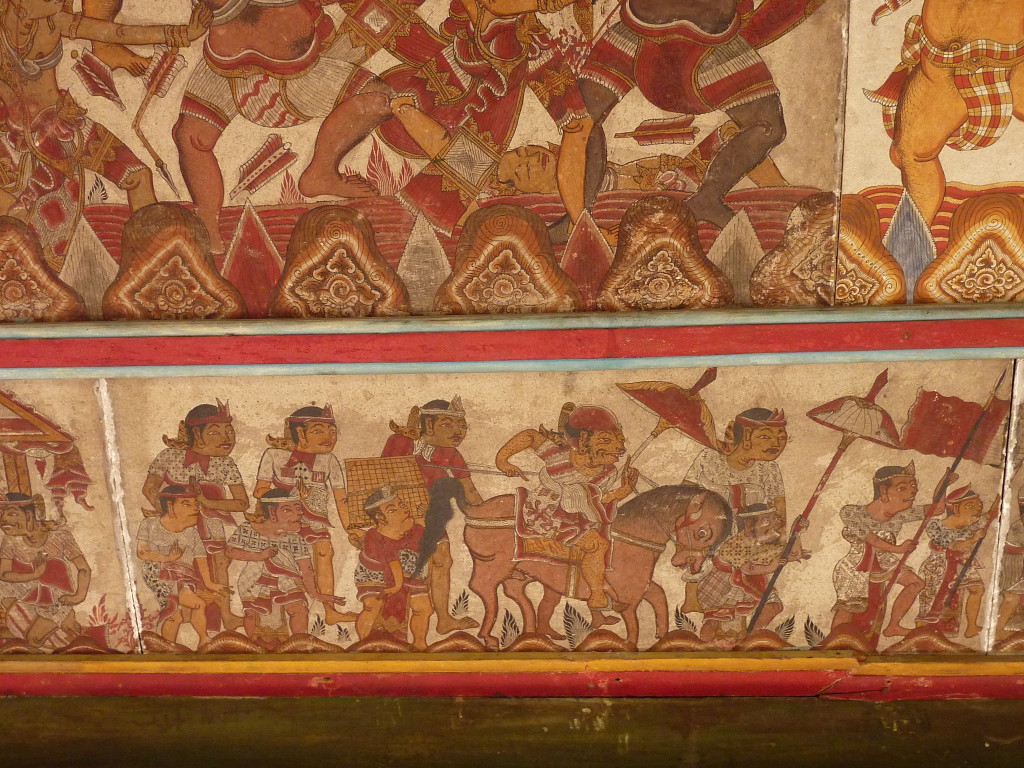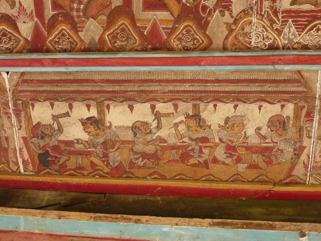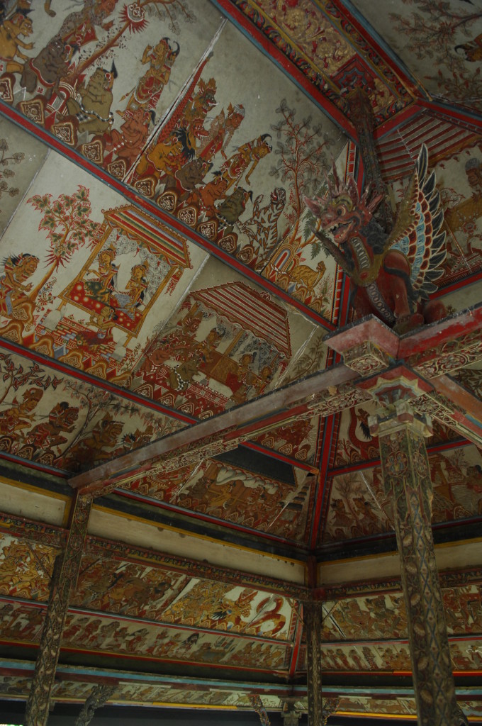 Letzte Station unserer heutigen Ost-Bali-Tour ist der Palast von Klungkung. Von der ursprünglichen Palastanlage sind nur noch Reste übrig, das Kertha Gosa Pavillon diente zuletzt als Gerichtssitz und beherbergt heute ein kleines Museum. Sehenswert ist der „schwimmende“ Pavillon direkt hinter dem Eingang. Die Holzdecke ist üppig mit Szenen aus dem Leben der Balinesen bemalt.