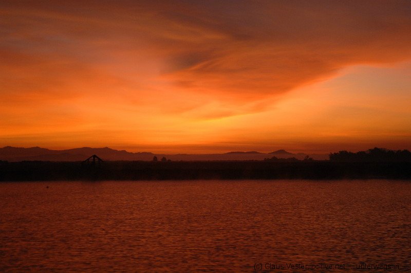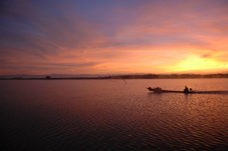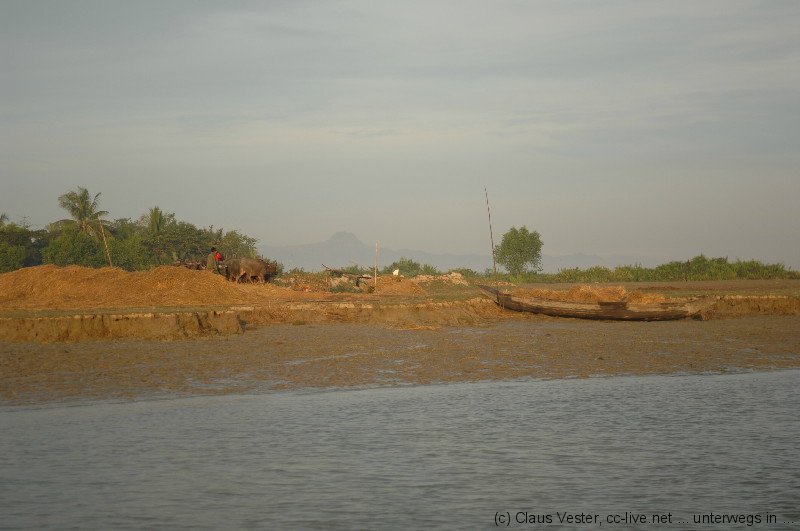 Um fünf Uhr marschieren wir in völliger Dunkelheit zum Hafen, wo bereits unser Boot nach Sittway wartet. Den Sonnenaufgang erleben wir eine Stunde später auf dem Fluss. Nach 5 ½ stündiger Fahrt erreichen wir den Hafen von Sittway und fahren mit einem Tuk Tuk zum Airport. Unterwegs setzen wir Katrin und Thomas an einem Hotel ab, da sie noch einen Tag hier verbringen wollen und keinen festen Rückflug gebucht hatten.