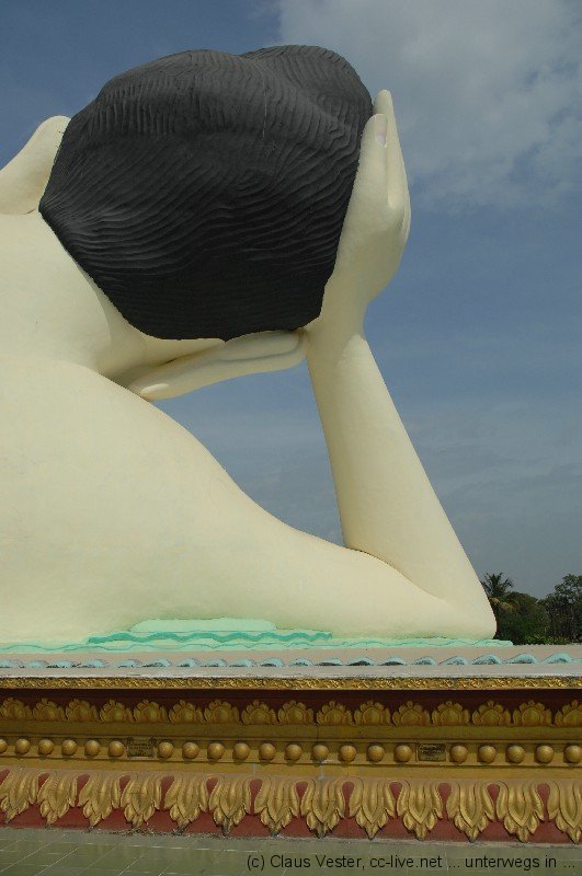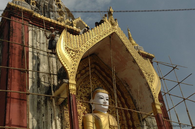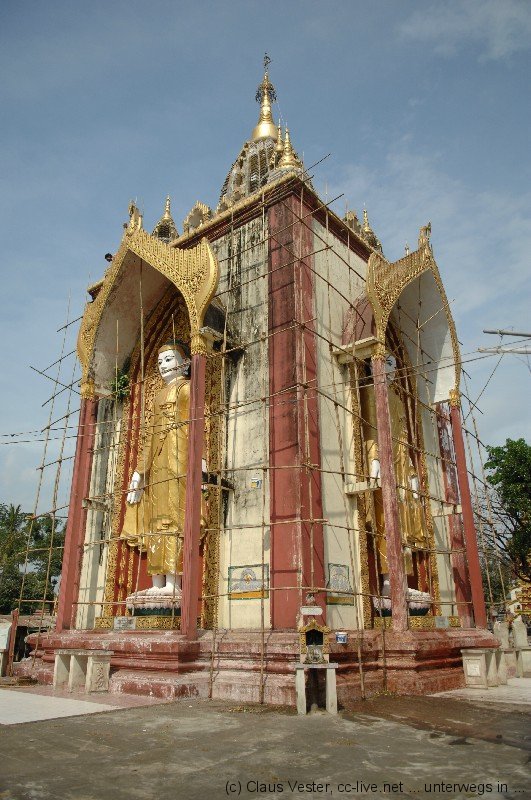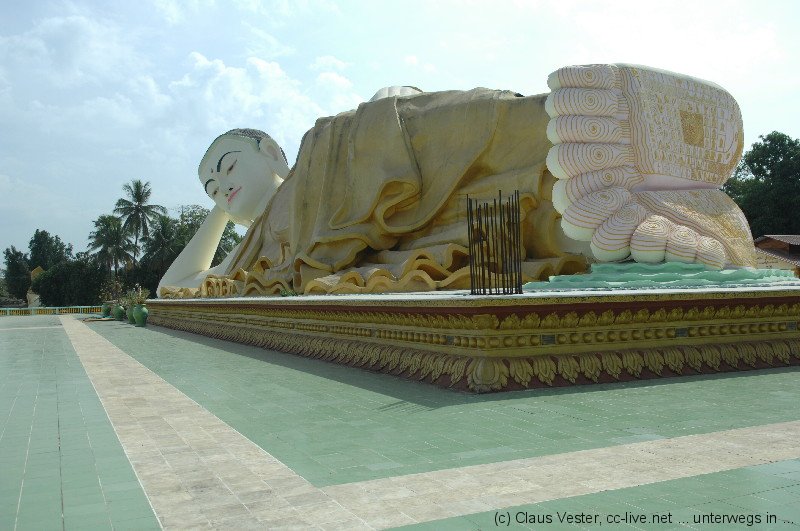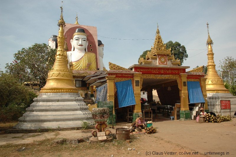 In Bago beeindruckt zunächst Kyaikpun, die vier sitzenden Buddhas. Der Legende nach wurden sie von vier Schwestern gestiftet. Sie versprachen einander nicht zu heiraten. Sollte es eine dennoch tun, würde die ihr zugehörige Statue einstürzen. Tatsächlich brach der nach Norden schauende Buddha einige hundert Jahre nach dem Bau bei einem Erdbeben zusammen. Doch da waren die Stifterinnen schon lange tot. Oder hatte eine von ihnen doch heimlich geheiratet und es war erst jetzt herausgekommen? Wer weiß…