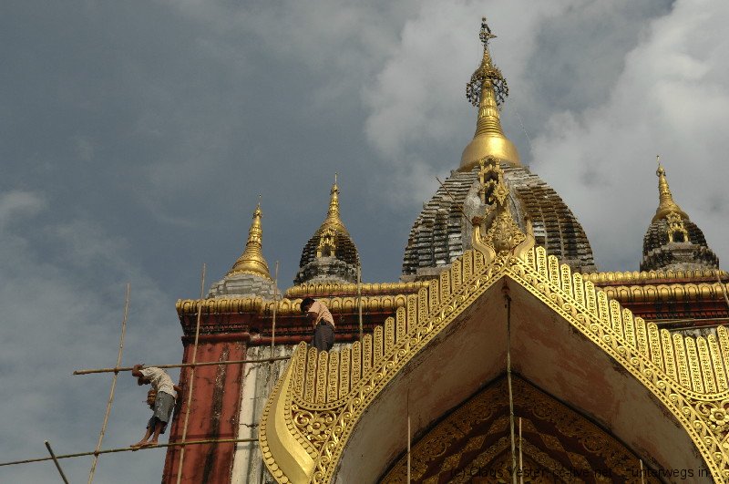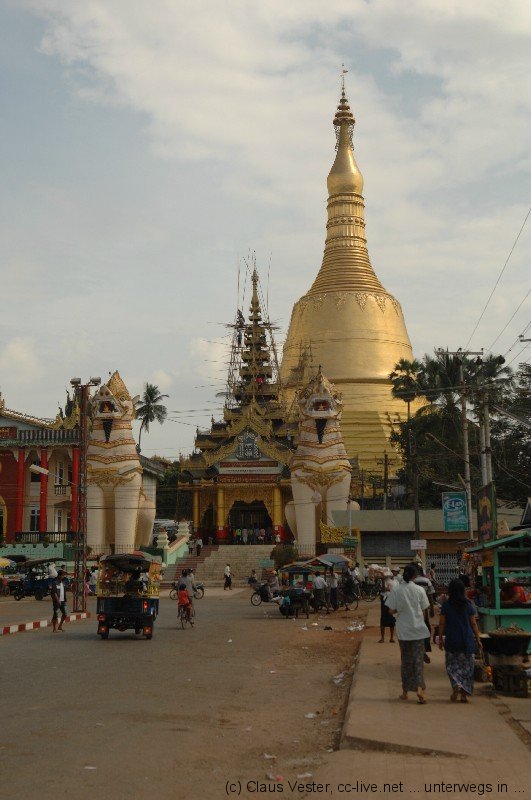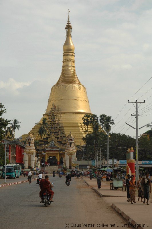 Nach einer Besichtigung des 2006 neu erbauten, 90 Meter langen und 21 Meter hohen liegenden Buddhas betreten wir die gegenüberliegende vierseitige Ananda Pagode, die im 16. Jahrhundert errichtet wurde. Nach einem weiteren Stopp an der Maha Kalyani Sima, dessen 1476 erbauter Thein (Ordinationshalle) zuletzt bei einem Erdbeben 1917 am stärksten zerstört und später wiederaufgebaut wurde, fahren wir zum größten Heiligtum von Bago. Die 114 Meter hohe Stupa der Shwemawdaw Pagode ist die höchste von Myanmar und übertrifft sogar die Shwedagon in Yangon um 14 Meter.
