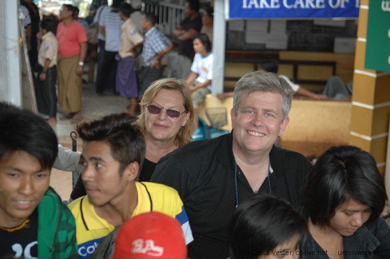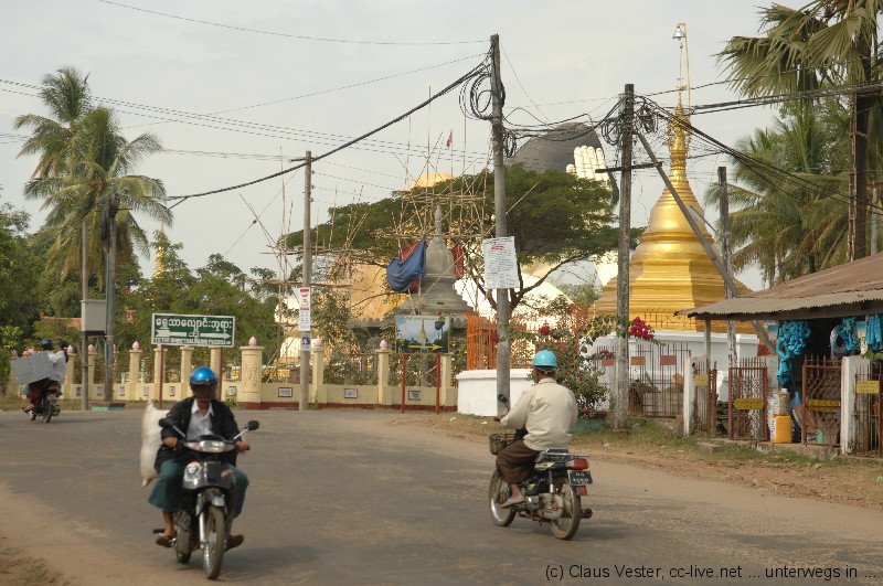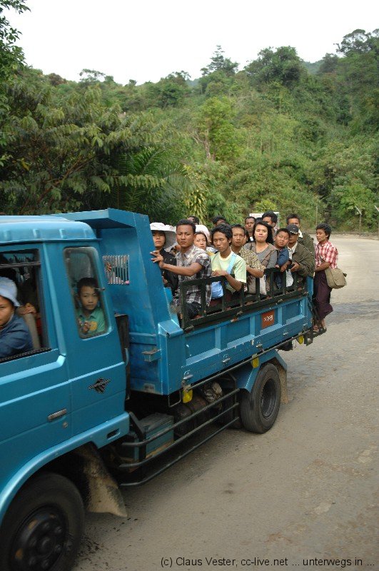 Die mautpflichtigen Straßen in Richtung Kyaikhto sind in einem guten Zustand, so dass wir gut vorankommen. An einem Checkpoint an der Grenze zum Bundesstaat Mon werden wieder einmal die Pässe und Visa kontrolliert. Geschah dies früher durch das Militär, so haben heute Einheiten der Polizei diese Aufgabe übernommen. Doch letztlich haben nur die Uniformen gewechselt. Aus Militärgrün wurde Blau, die kommandierenden Personen blieben die alten.