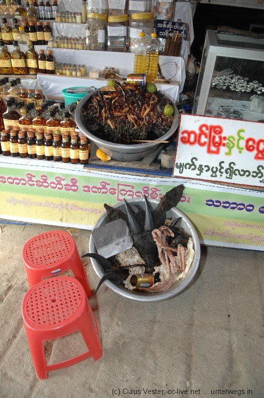 Bei Einbruch der Dunkelheit erreichen wir Taungoo und checken im Myanmar Beauty Guesthouse 2-4 ein, Teak-Häuser im Kolonialstill, die sich am Ortsrand inmitten von Reisfeldern befindet. Auch wenn es schon etwas in die Jahre gekommen ist, lohnt sich eine Übernachtung hier. Die großzügig mit zahlreichen Antiquitäten ausgestatteten Zimmer wecken Erinnerungen an Zeiten, als Rudyard Kipling und Summerset Maugham ihre Asienreisen beschrieben. Natürlich gibt es hier aufgrund der Lage jede Menge Mücken, aber mit einem Moskitonetz ist das kein Problem. Nach einem leckeren chinesischen Essen im Mother’s House Restaurant des gleichnamigen „Hotels“ fallen wir müde und glücklich ins Bett …