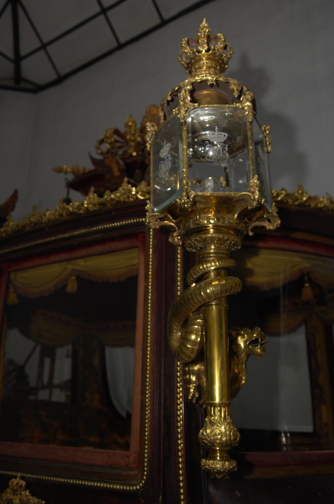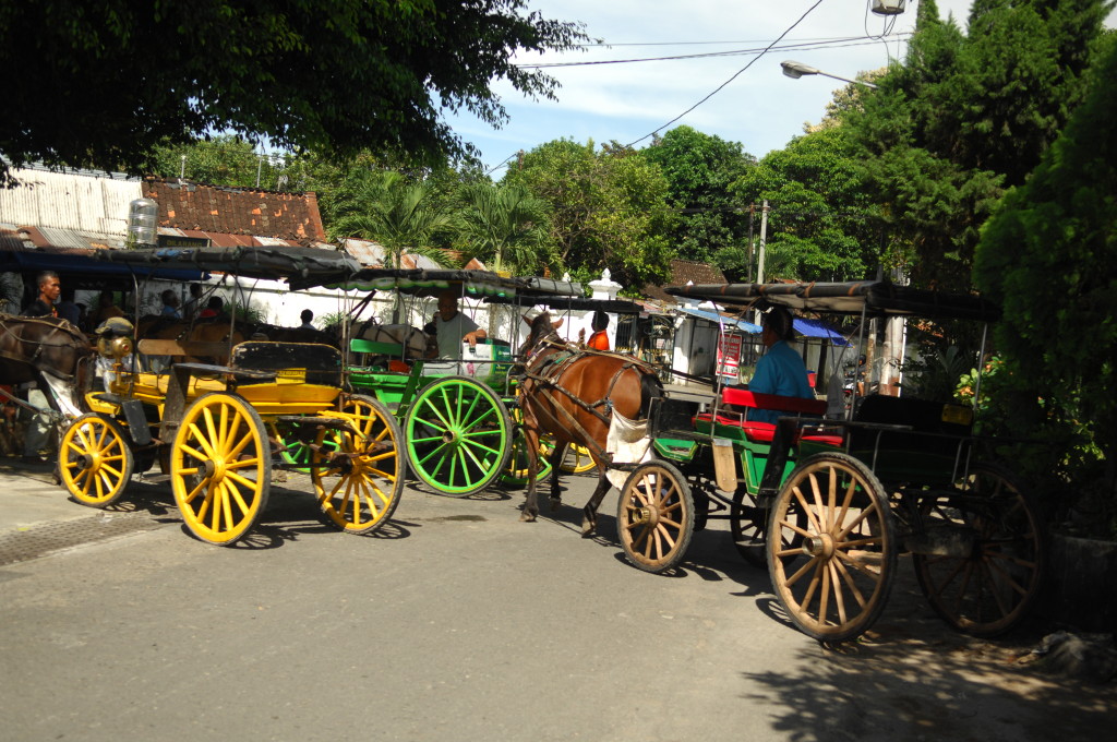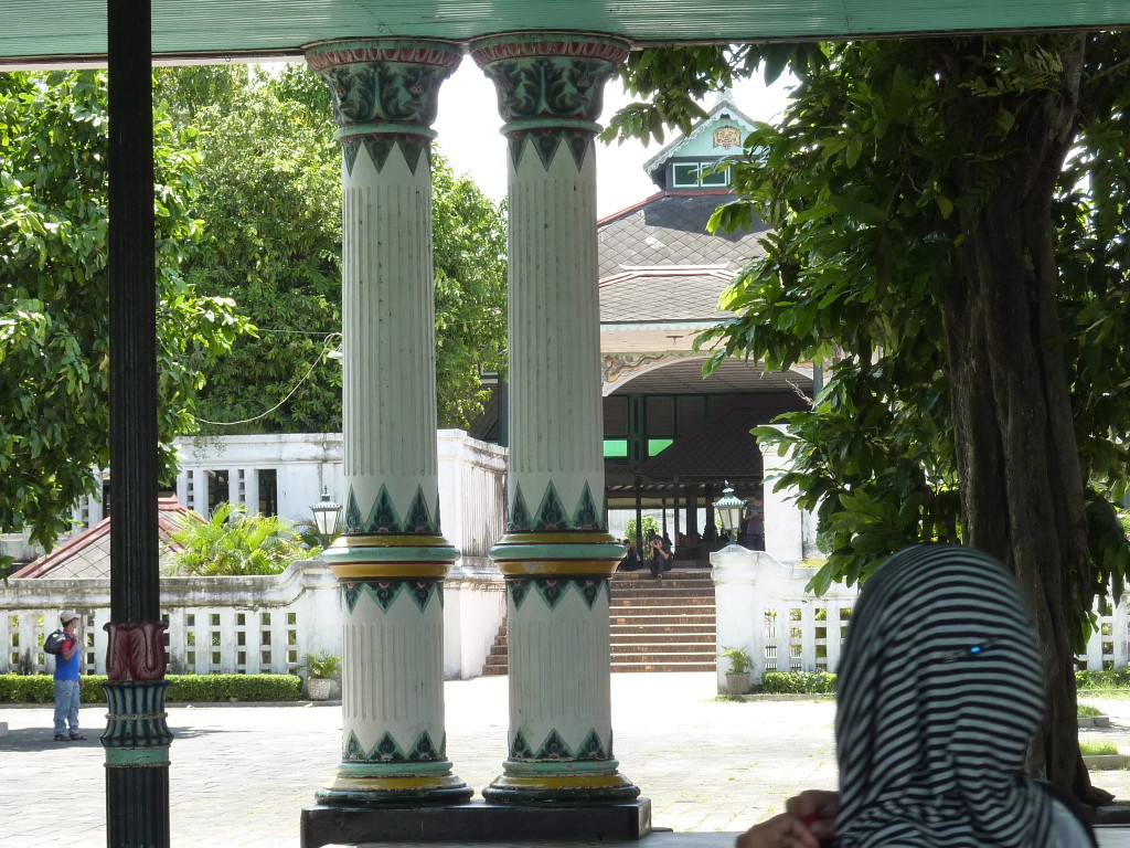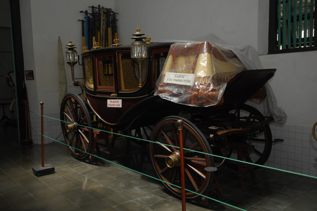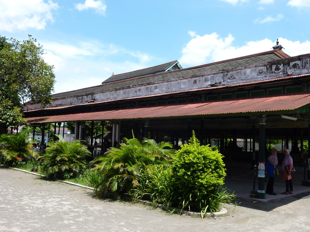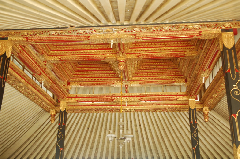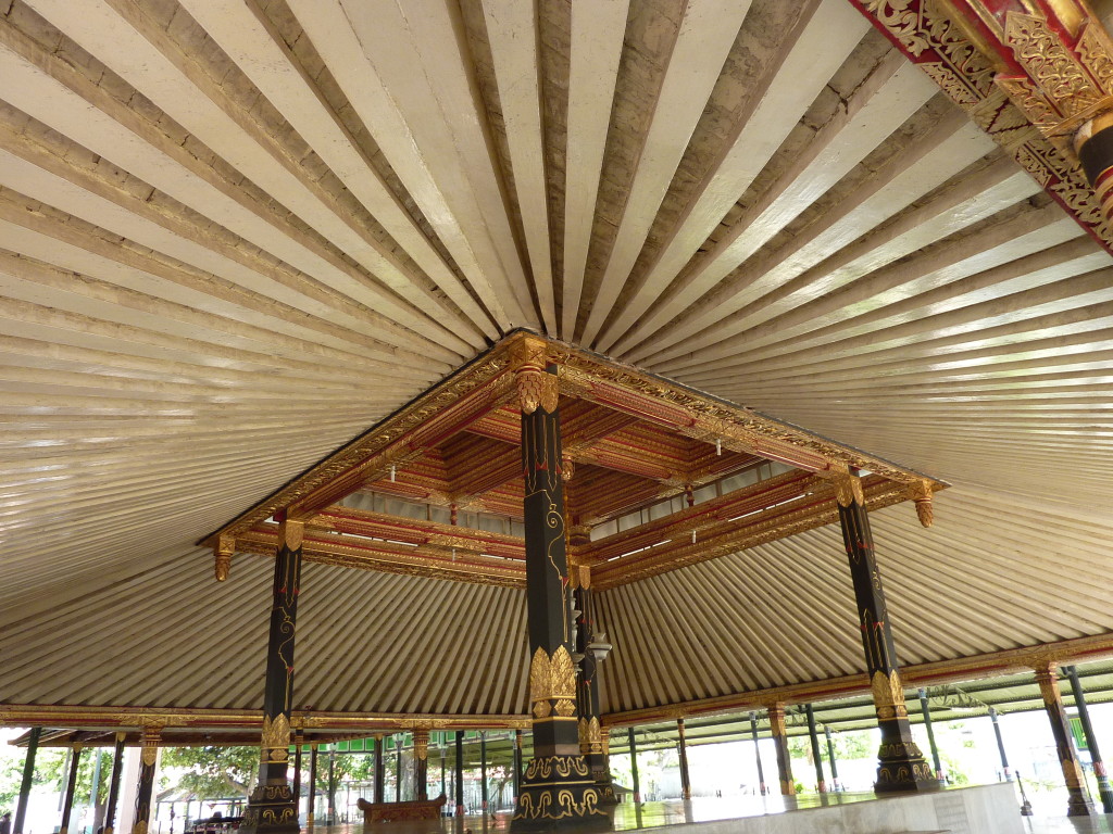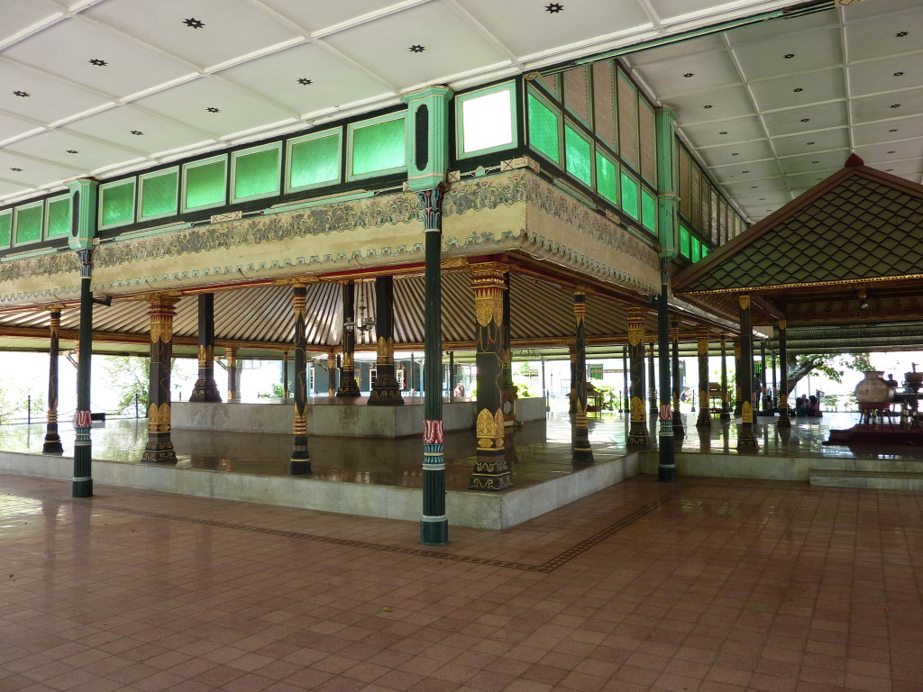 Die für die Öffentlichkeit zugänglichen Bereiche empfinden wir als ziemlich unspektakulär. Wirklich sehenswert ist allenfalls die kunstvoll ausgeschmückte Decke des Pavillons des Pagelaran. Das Gebäude wird für offizielle Anlässe wie die Krönungs- und Beschneidungszeremonien genutzt. Dem Zustand nach zu urteilen, scheint dies aber schon viele Jahre her zu sein. In einem der umliegenden Gebäude sind zeremonielle Kleidungsstücke ausgestellt, in einem anderen, ansonsten leeren Gebäude hängen alte Kopien mit Portraits der Herrscher seit dem dritten Sultan von Ngayogyakarta Hainingrat an den Wänden, sowie Fotografien der Kutschen aus dem Fuhrpark. Die echten Karossen befinden sich in einem kleinen Museum rechts außerhalb der Palastmauern in Richtung Süden.