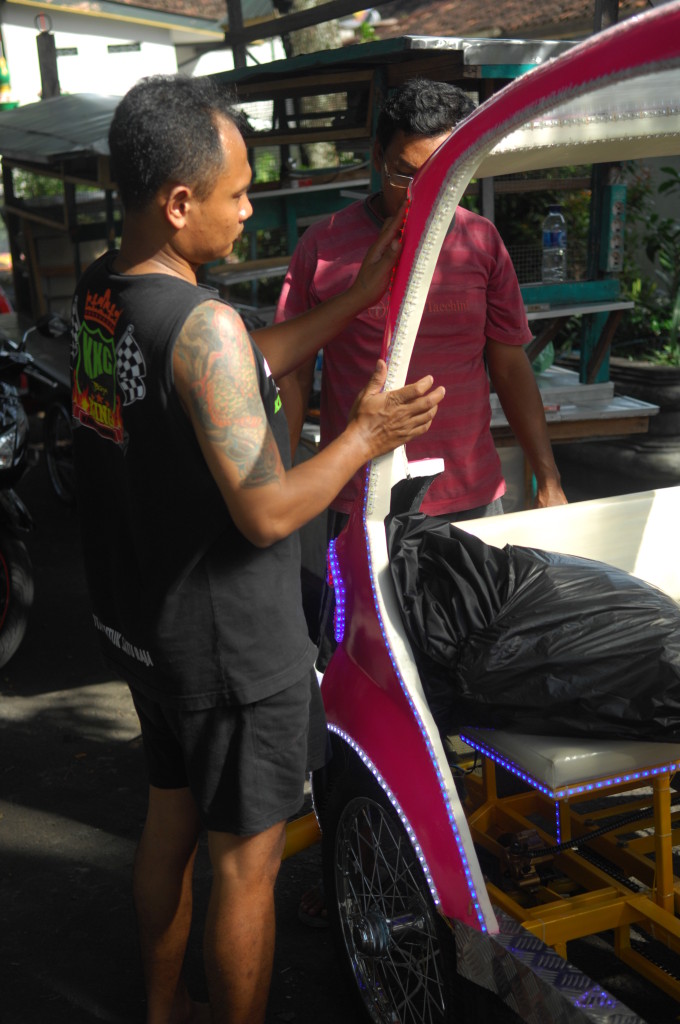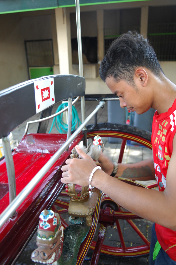 Den verbleibenden Nachmittag über erkunden wir noch ein wenig die nähere Umgebung südwestlich des Kraton. Nach einem Abstecher zum Taman Sari, den Ruinen des von den damaligen Kolonialherren errichteten Waterkasteel, kommen wir an den Werkstätten einiger Puppenmacher vorbei.