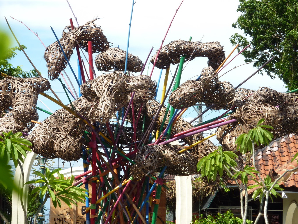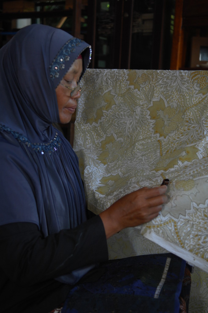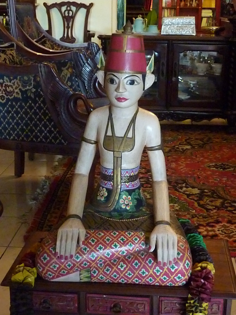 Eine weitere Form des Puppentheaters ist das Spiel mit den dreidimensionalen Stabpuppen (wayang golek). Diese bunt bemalten und mit Stoffkostümen gekleideten Holzpuppen werden hier ebenfalls gefertigt. Wie schon mehrmals zuvor werden wir vor dem Kauf von Souvenirs auf der „berühmten“ Jalan Malioboro gewarnt. Dort gäbe es meist Billigware aus chinesischer Produktion zu überhöhten Preisen.