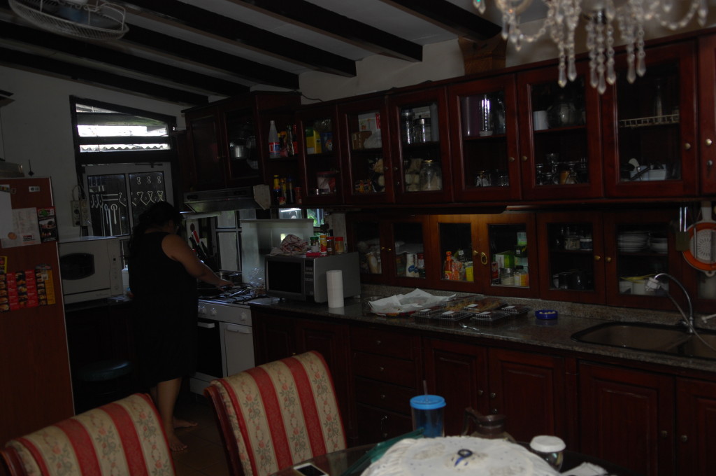 In der Küche des Wohnbereichs der Familie treffen wir Ajeng Hanie, die gerade Chicken Wings für ihren neuen Lieferservice zubereitet und uns gleich ein paar davon zum Probieren anbietet. Schnell kommen wir mit der begeisterten Hobbyköchin ins Gespräch. Eine gute Gelegenheit, einige Zutaten in Erfahrung zu bringen, mit denen die köstlich gewürzten traditionellen Eistees (Stup Jambu, Bir Jawa, Royal Secang) zubereitet werden, denken wir. Ajeng verweist uns an ihre Mutter mit dem Hinweis, diese habe ein beliebtes, derzeit leider vergriffenes Kochbuch geschrieben.