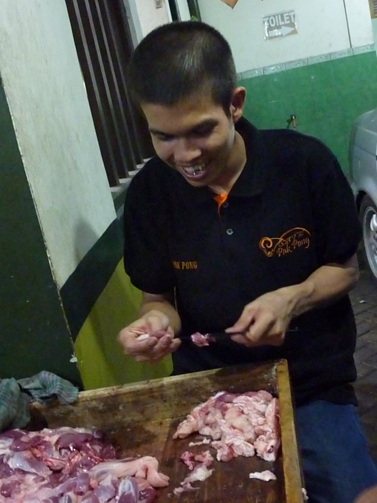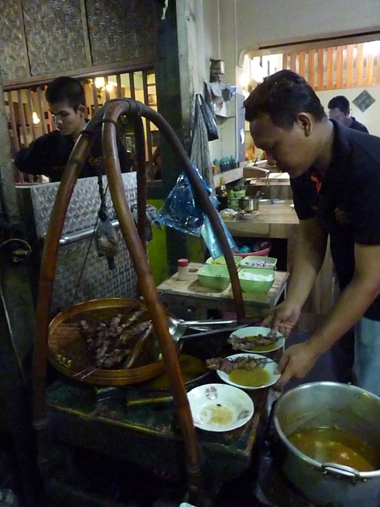 Speisekarte des Sate Pak Pong – alle Gerichte mit Fleisch von jungen Ziegen und Reis als Beilage