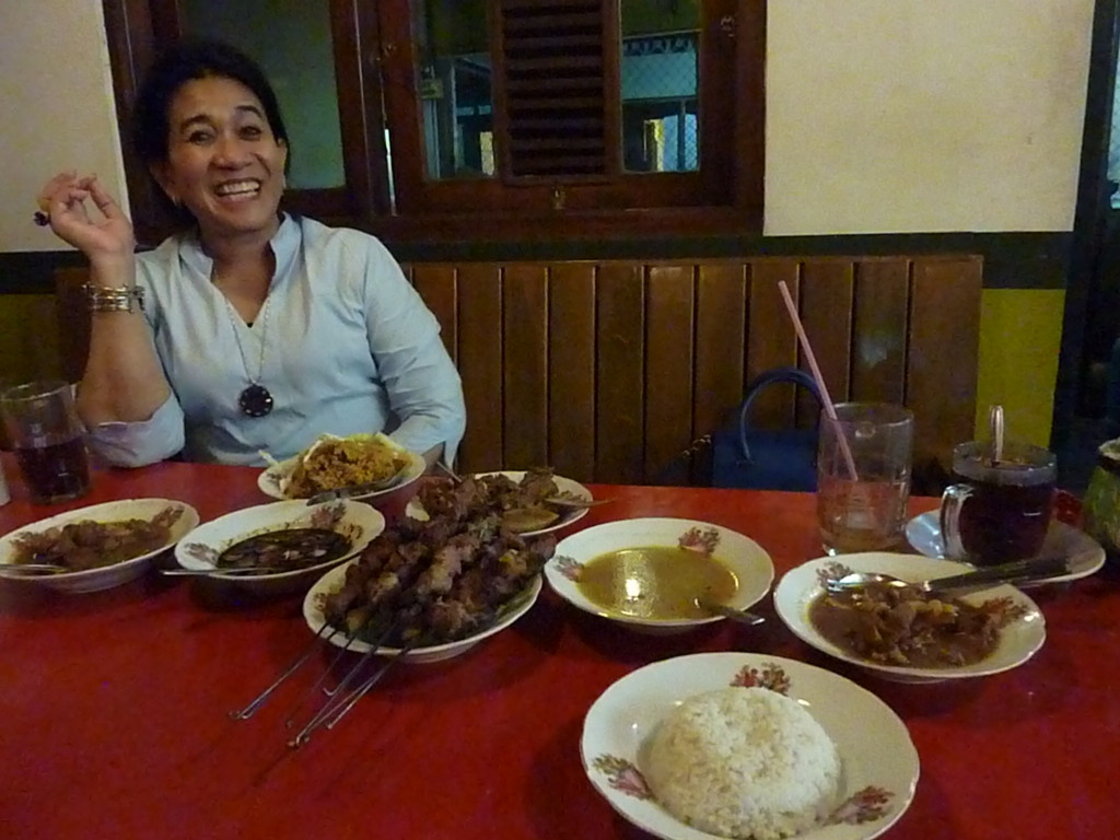 Während uns Hanie die einzelnen Gerichte erläutert, ist ihre Mutter plötzlich Richtung Küche verschwunden und spricht mit natürlicher Selbstverständlichkeit mit den Angestellten. „Typisch Mam,“ grinst die Tochter. Wer daheim ein großes Restaurant führt, hat von Haus aus einen guten Draht zum Küchenpersonal. Dann türmen sich auch schon die Tellerchen auf dem Tisch. Schließlich sollen wir möglichst viele der Variationen probieren. Es schmeckt wunderbar. Das Fleisch ist herrlich zart, nur bei den Soßen muss man ein wenig aufpassen, damit es nicht zu scharf wird.