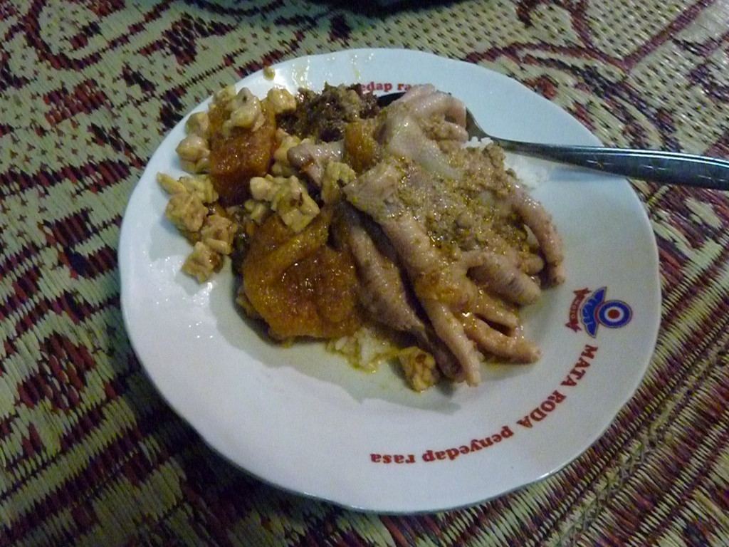 20.30 Uhr in Yogya. Im Gegensatz zu anderen Regionen und Städten endet das Nachtleben hier nicht um diese Zeit, sondern geht erst jetzt richtig los. Hanie hat eine Facebook PN per Messanger geschickt, dass sie uns mit einem schwarzen Pajero abholen wird. Gemeinsam mit ihrer Mutter machen wir uns auf den Weg zur besten Nudelsuppe der Stadt. Wir halten vor einer unscheinbaren kleinen Garküche am Straßenrand. Das Restaurant auf der anderen Seite habe zwar auch ein ähnliches Angebot, sei aber lange nicht so gut. Hanies Mutter bestellt uns je eine Portion mie goreng (gebratene Nudeln) und mie godog (Nudeln mit Soße) sowie für sich und ihre Tochter rica-rica ayam (gebratenes Huhn). Dazu gibt es einen gewürzten Kokosmilchtee (Bajigur) in zwei Varianten mit und ohne eingeweichte Brotstückchen sowie mit süßer Sojasoße beträufelte Krabbenchips (krupuk). Schwer zu sagen, welche Nudelvariante besser schmeckt.